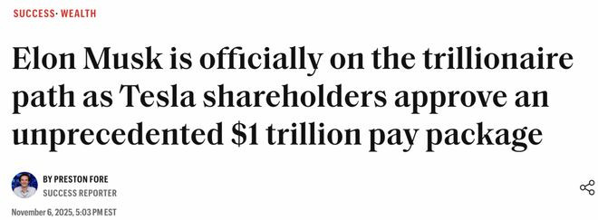 2025年11月07日,特斯拉股东大会刚刚批准了一项史无前例的高管薪酬方案: